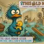 At this point, I’m ankle-deep in water and denial. I sprint upstairs, slip on a bath mat, and crash into the vanity like a feathered wrecking ball. I yank open the cabinet and discover the pipe joint I “tightened” last month is now looser than my grip on reality.